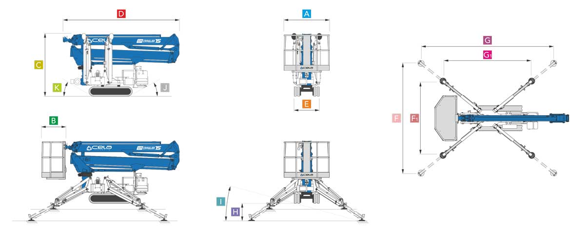 Whether you require precise access to confined spaces or an extended outreach, the Crawler DT15 offers both narrow and wide jack placement.
