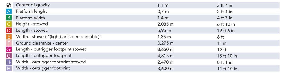 When electric-powered, the DT Trailer 22 operates both indoor and outdoor where its outriggers support work on uneven ground with up to 5% leveling capability. Due to the low weight, this Cela lift can be towed by most vehicles and the low center of gravity makes it excellent to handle while driving, hence a higher safety level.