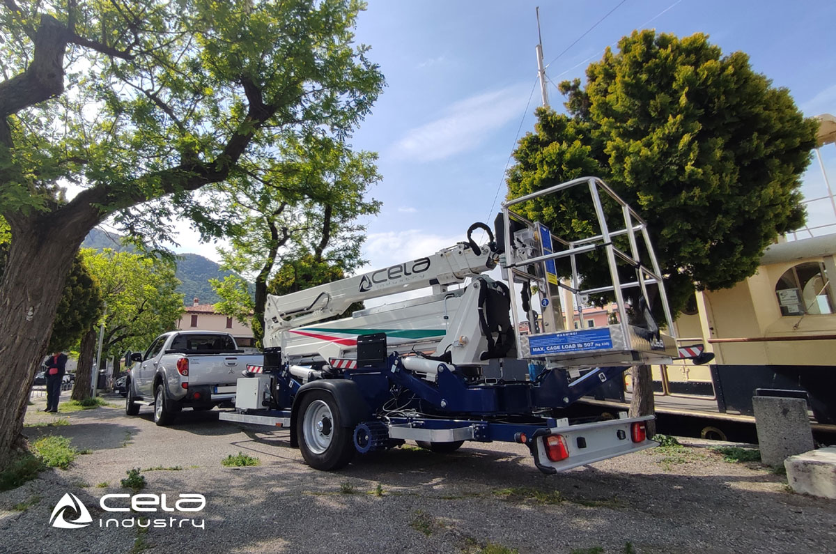 Power options available on Cela’s trailer-mounted boom lifts include Diesel and AC Electric (‘Bi-Energy’ combining the benefits of two power sources on the same machine) and Lithium.