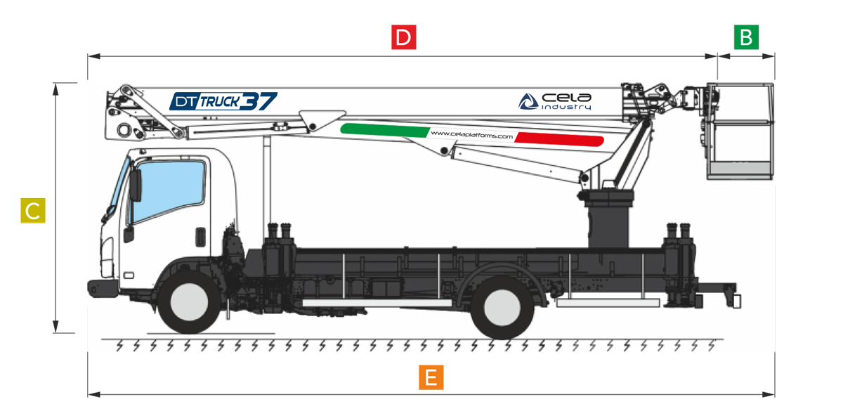 The DT Truck 37 semicircular working area, combined with exceptional outreach, overreach, and negative reach capabilities, makes it a versatile choice for various applications. Just like our other machines, it comes with an extensive array of accessories to cater to your specific needs. One noteworthy feature is its ability to be mounted on trucks with a low Gross Vehicle Weight (GVW), making it exceptionally unique in the industry.